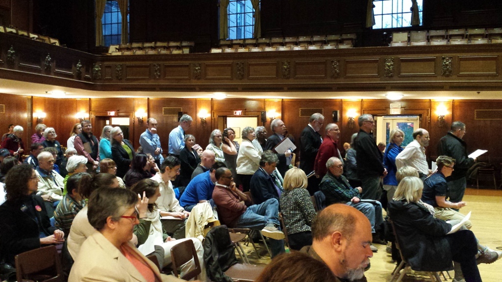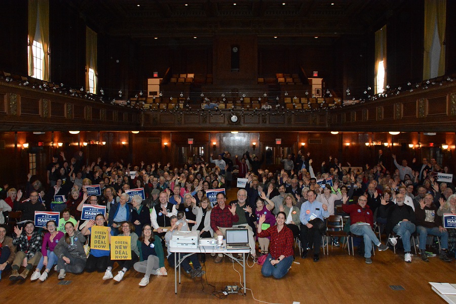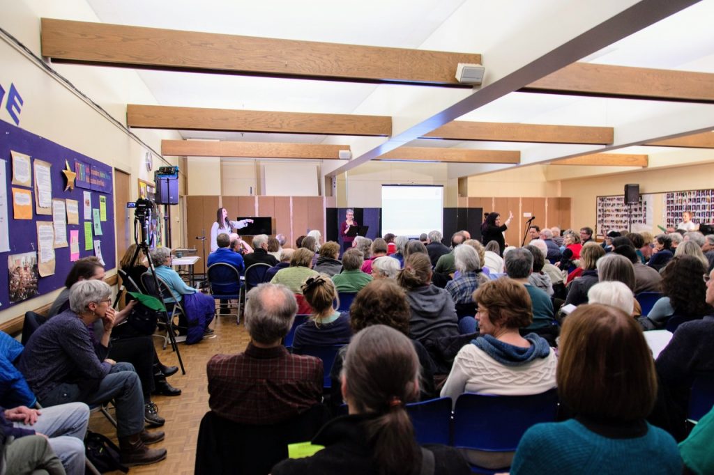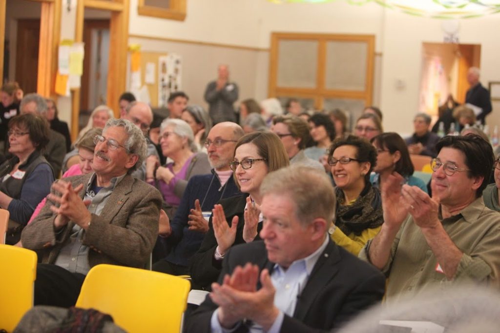 March 2018: Members of the large and appreciative audience (in front, Jimmy Tingle, candidate for Lieutenant Governor).