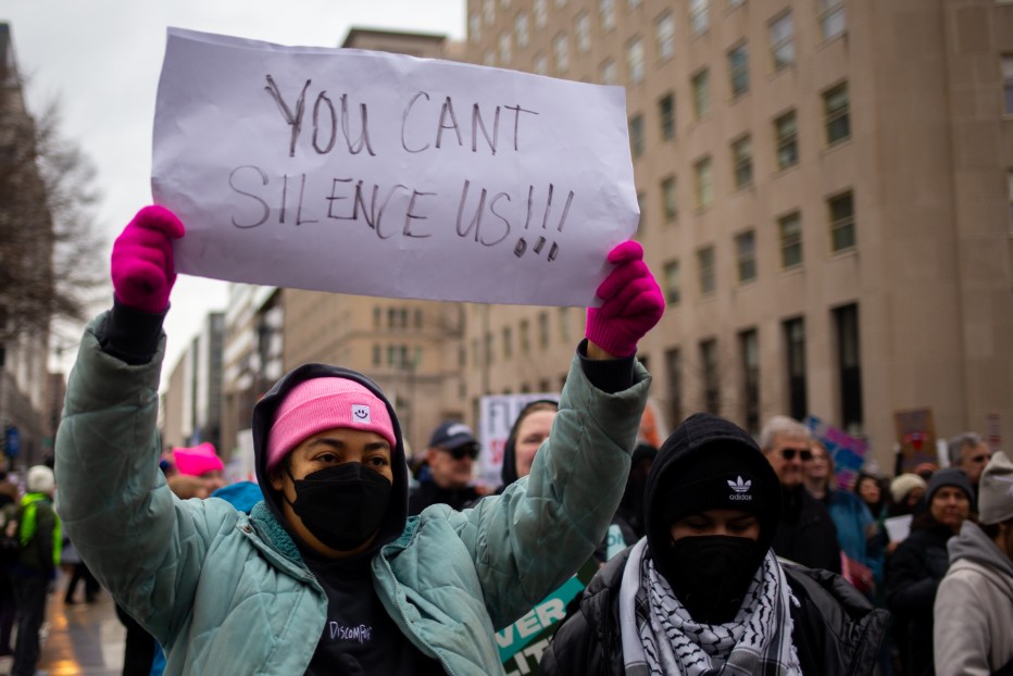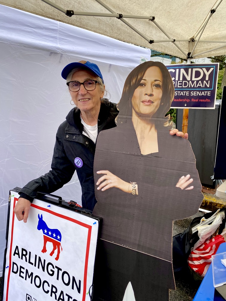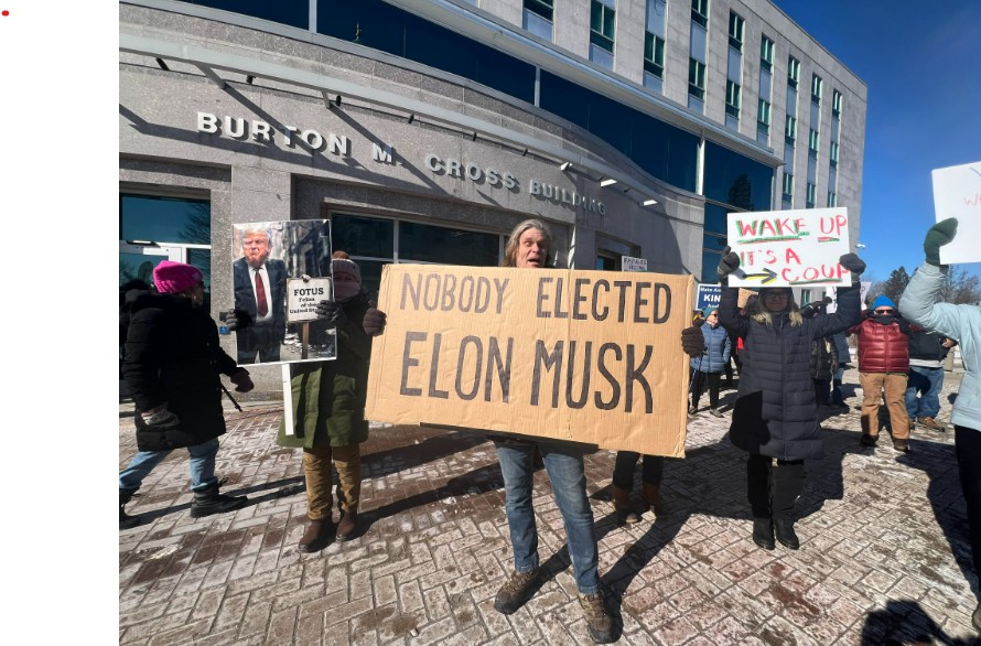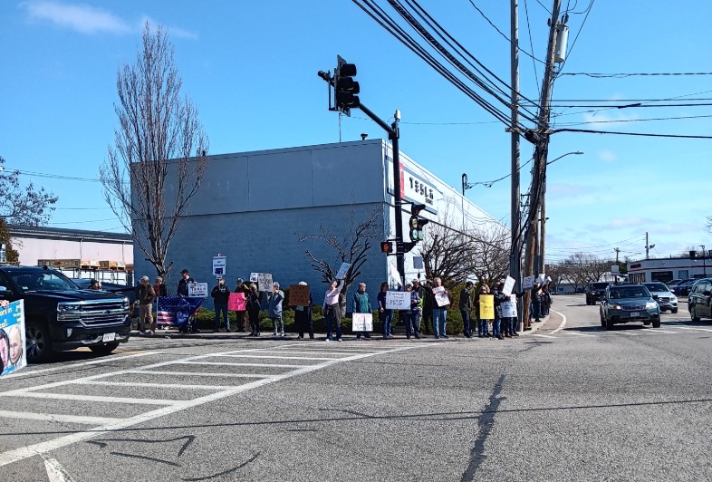 April 2025: Arlington protestor on the way to Boston Hands Off rally (1)